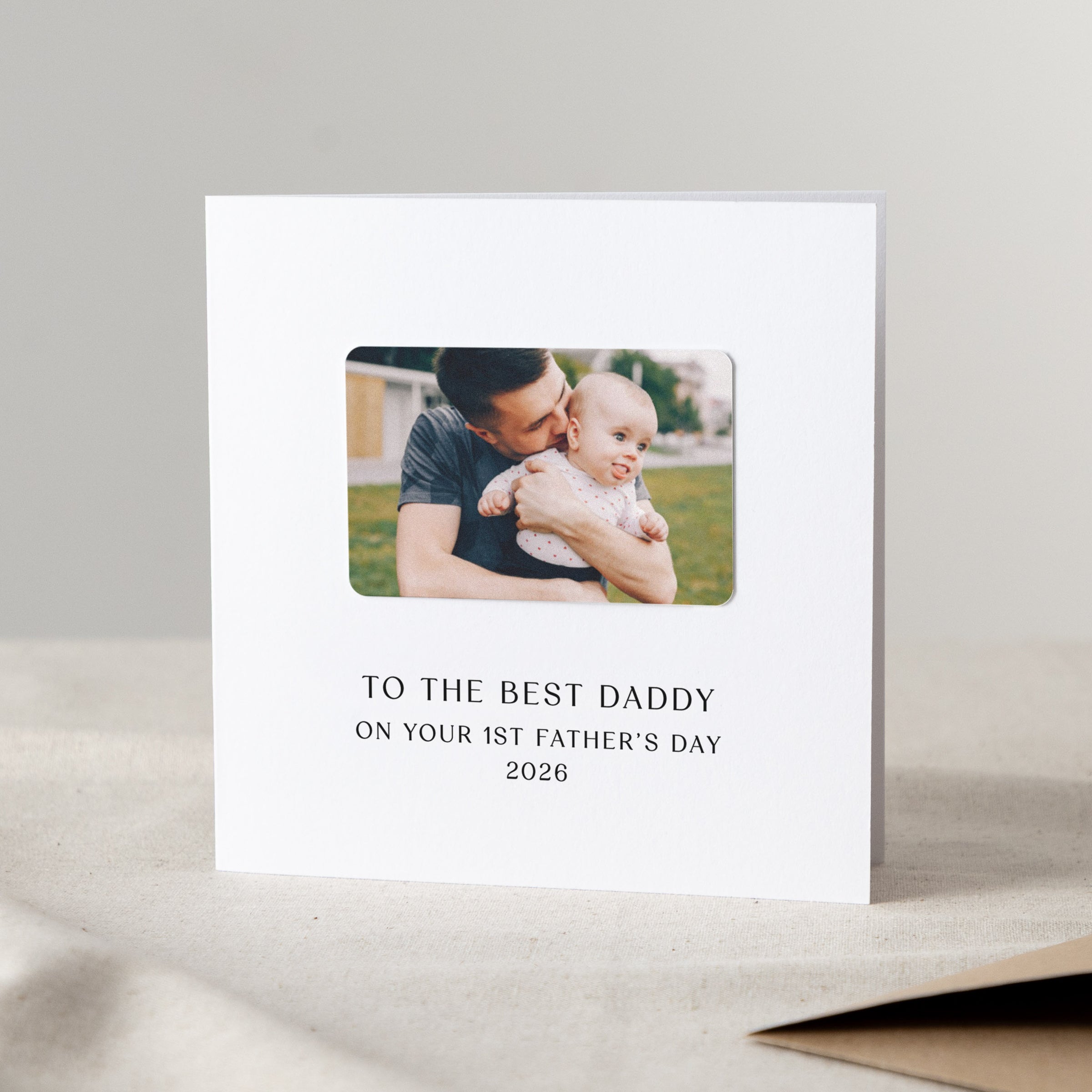 A personalised card is perfect for new Dad. With a metal photo wallet card, this keepsake card makes a great, personalised first Father's Day card with your own custom photo.