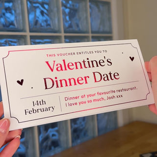 Personalise your very own gift voucher this Valentine's Day, for the perfect gift to surprise a special someone with a date night, dinner or event ticket. These gift vouchers are great to give the recipient when you don't have a physical present so they still have something to open, to reveal the surprise. The ticket can also be kept as a special keepsake of the event.