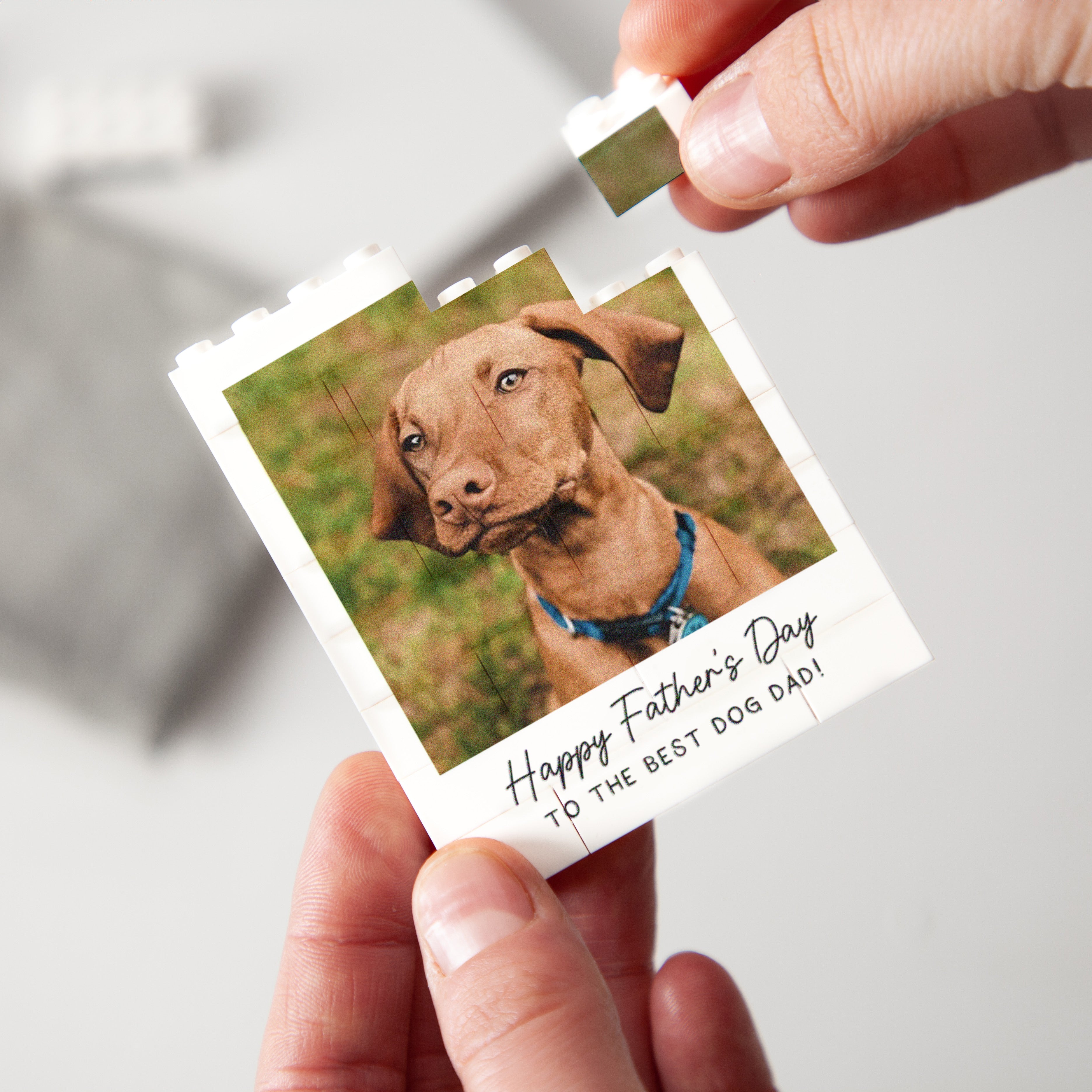 A personalised building block that is the perfect Father's Day gift from the dog. With a custom photo design, this building block makes a great, Father's Day or birthday gift.