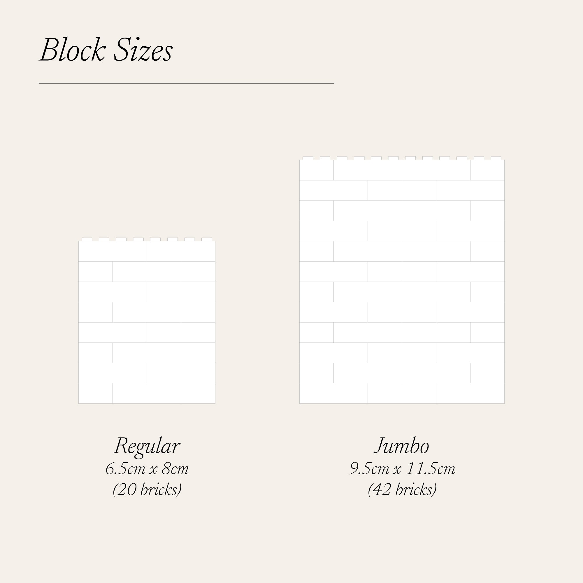 Choose between a regular or jumbo size. The bricks can be taken apart, creating a fun and interactive puzzle for the recipient to put back together, or can be given assembled as a decorative piece.